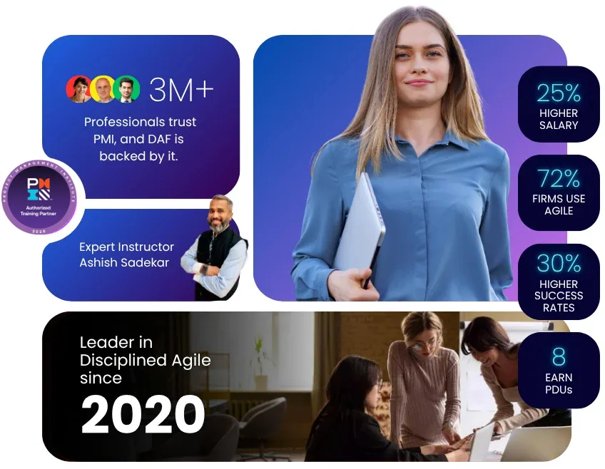 Curious how the Disciplined Agile Foundations course can help you? Watch Our Exclusive Webinar hosted by DA Expert Mr. Ashish Sadekar. Get a sneak peek into the DAF course content, course objectives, implementation in real-world scenarios, and much more!